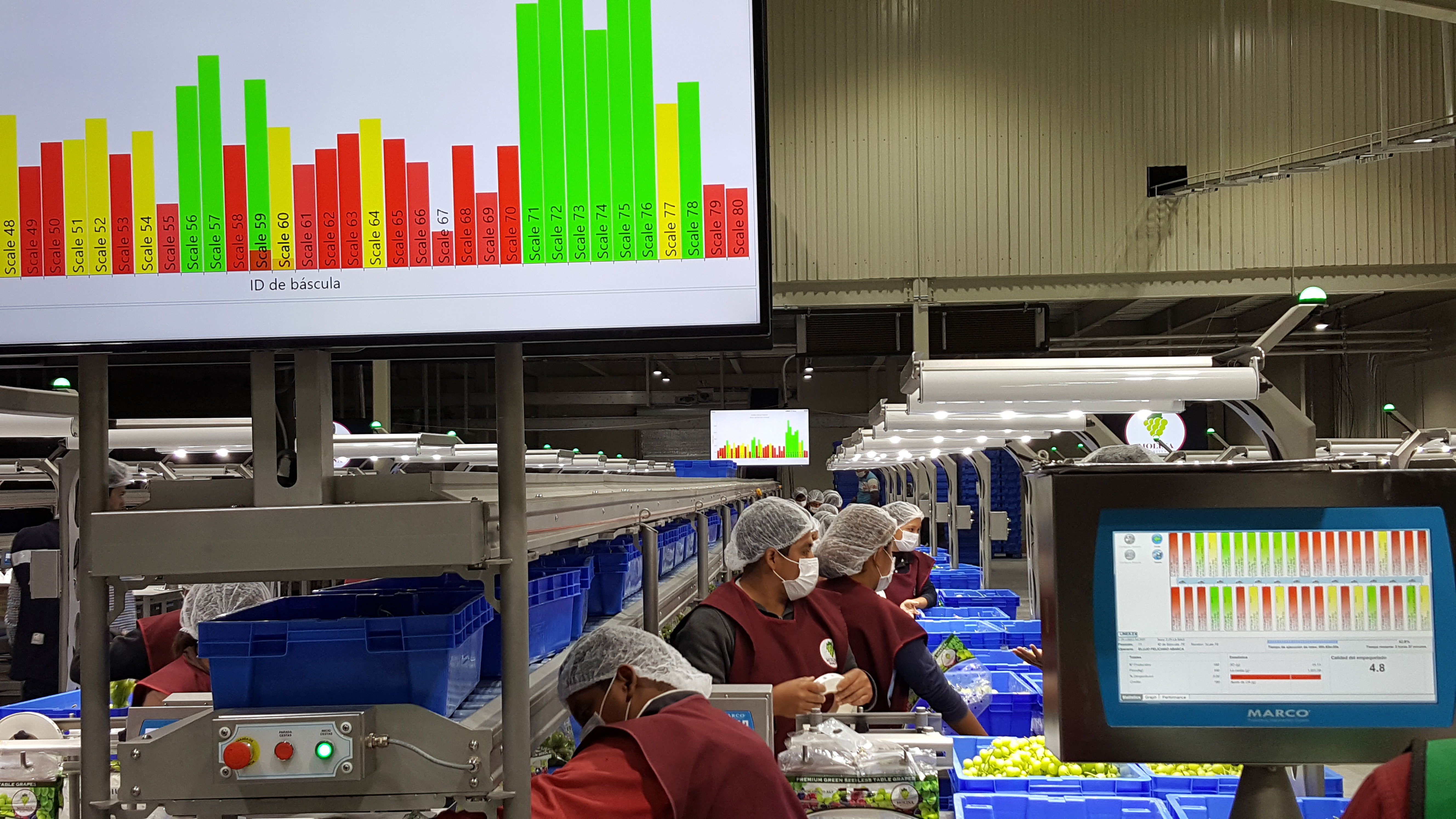 MARCO’s range of operator friendly Yield Control weighing workstations further deskill the packing process through the use of MARCO’s language transparent ‘one light = one fruit’ weight indicators allowing operators to focus on quality and presentation, whilst providing managers with the tools and data to monitor and manage their factory processes in real time.